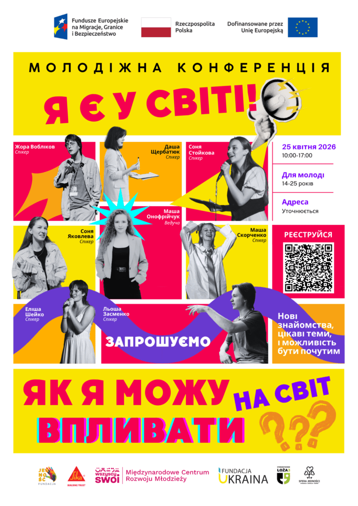 Działania są realizowane w ramach projektu „Otwartość na drugiego człowieka podstawą pokojowej przyszłości: Międzynarodowe Centra Rozwoju Młodzieży w Kielcach, Wrocławiu i Krakowie”, realizowanego dzięki wsparciu Funduszu Azylu, Migracji i Integracji w ramach Funduszy Europejskich na Migracje, Granice i Bezpieczeństwo 2021–2027.
